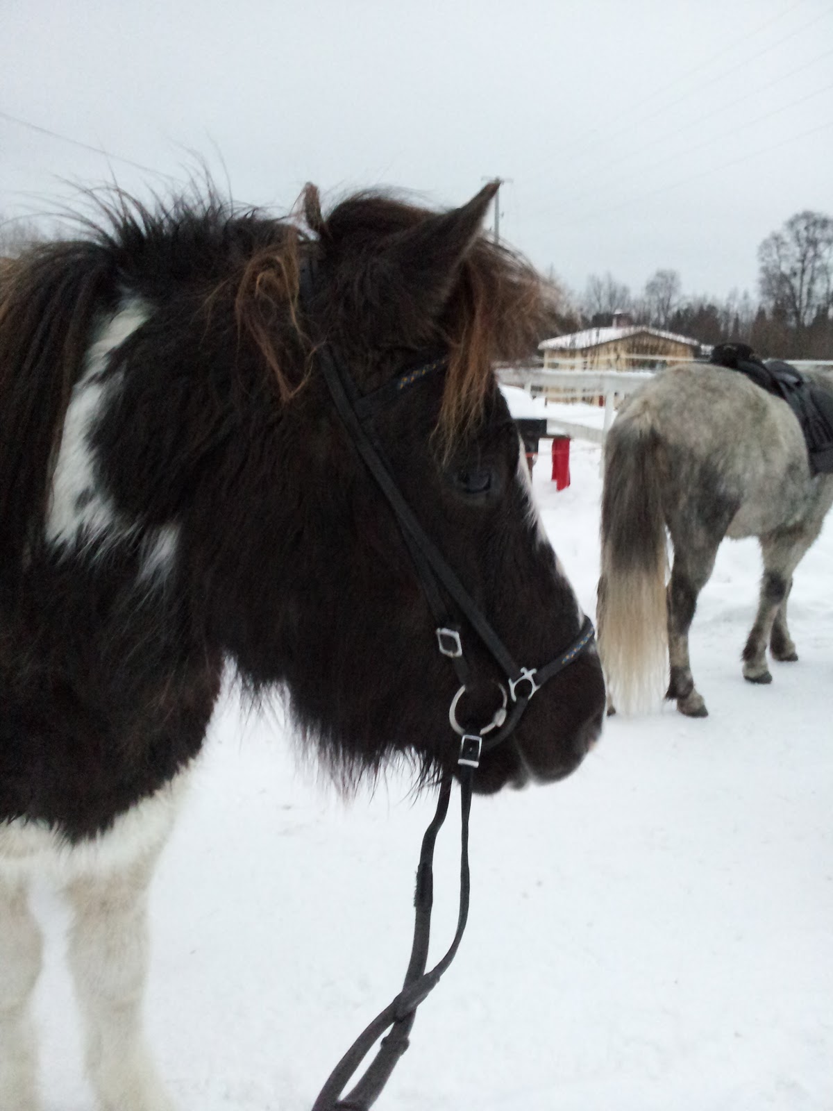 Hade stallmorgon på måndagen, samma visa som på söndagen, trynade lite efter han ätit kraftfodret.